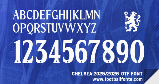 Chelsea 2025/2026 Font. Available in OTF and EPS files.
