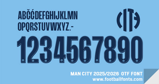 Manchester City 2025/2026 Font. Available in OTF and EPS files.
