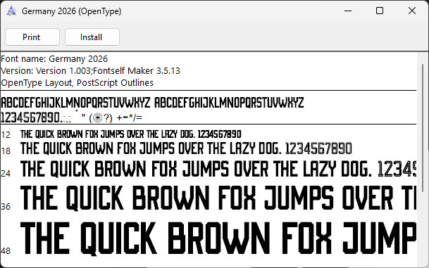 Germany 2026 OTF Font Installation Window