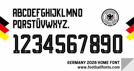 We have font that you can use as Germany 2026 Home font which is general font with all plain letters and numbers (WITHOUT Football Association logo in the bottom of numbers).